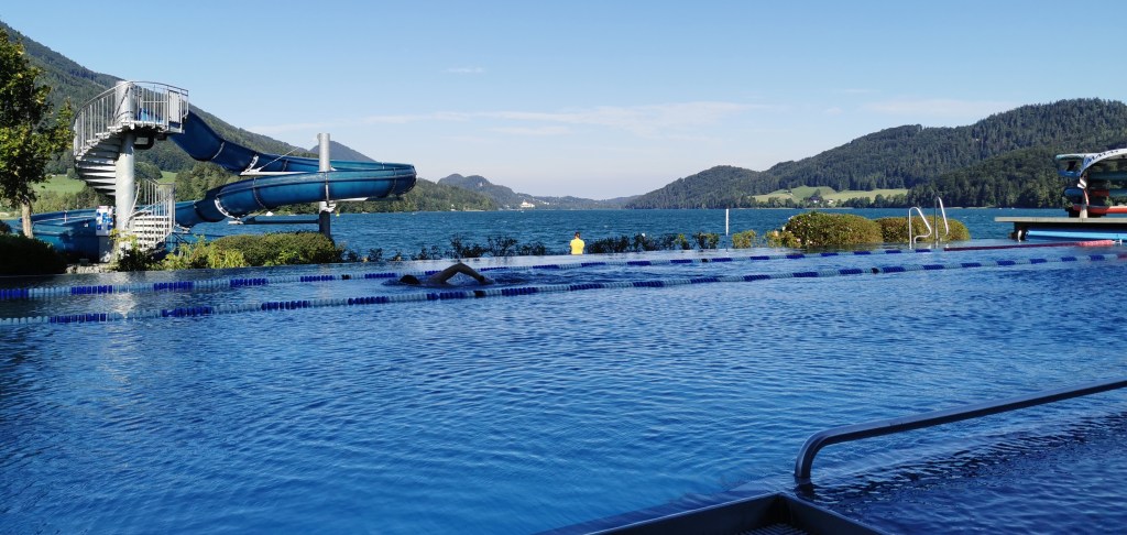 Fazit nach 8 tollen Tagen: Ein Region die sich lohnt, nicht nur zum Sport machen. Radfahren ist eine 1-! Warum 1-, es lag evtl an der Jahrenzeit, aber teilweise doch recht viel Verkehr auf den Straßen los. Schwimmen eine glatte 1! Laufen eine 3-. Da bin ich etwas enttäuscht. Um den See herum war nicht der Hit, man sieht den See selten und es ist mehr Trail und man muss immer auf jeden Schritt achten. Mit dem Auto zum Wolfgangsee oder Mondsee um dort zu laufen wäre bestimmt möglich war aber zumindest diesmal keine Option. Auf der gegenüberliegenden Seite der Bundesstarße habe ich dann gute Wege zum laufen gefunden. Deshalb noch eine 3-.