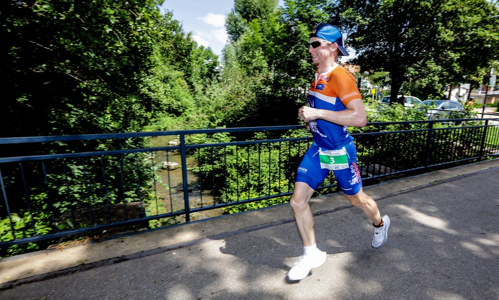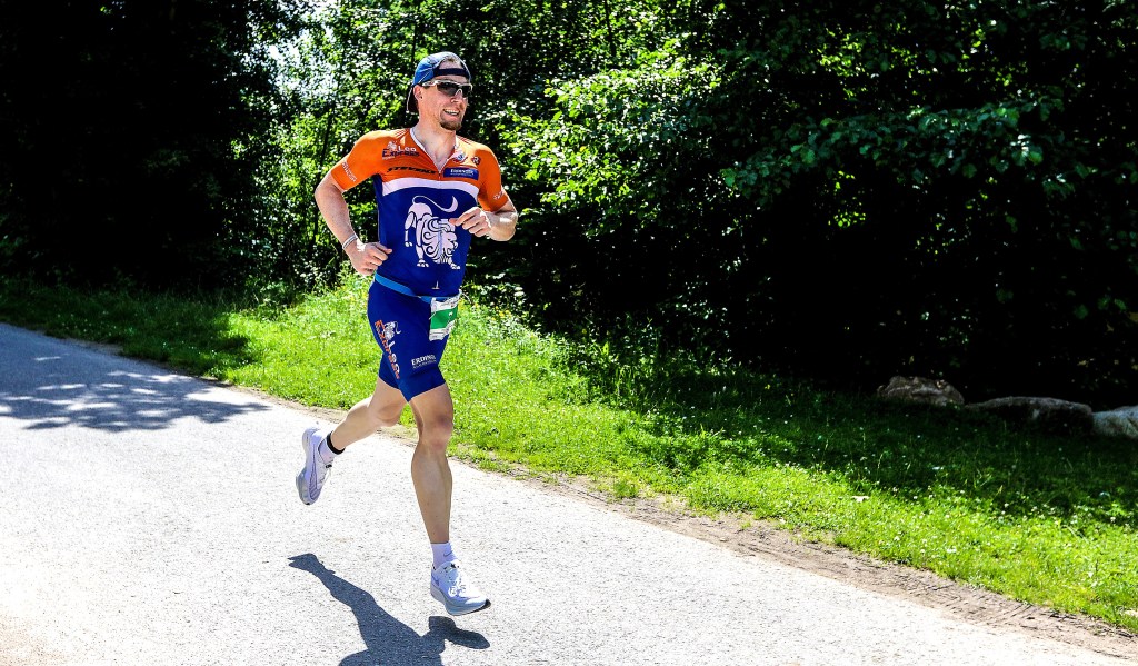 Dann der Wechsel zum Laufen. Ich wollte keine Blasen riskieren um auch das anstehende Training der kommenden Tage nicht zu riskieren, habe ich entschieden mit Sochen zu laufen. Im sitzen, denke so geht es schneller und die Scoken sitzen dann auch richtig, wechselste ich also zum laufen. Es war dadurch nicht der schnellste Wechsel für eine Sprintdistanz, aber eine gute Übung für die kommenden Wettkämpfe. So ging es auf die Laufstrecke. Bye the way, es standen nur ca. 10 Räder zu dem Zeitpunkt in der Wechselzone. Ein Athlet hatte meinen sitzenden Wechsel ausgenutzt und ist an mir vorbei, diesen konnte ich aber schon nach ca. 500m auf der Laufstrecke wieder stellen. Dort waren 2 Runden durch die City zu laufen. Normalerweise sind es etwas mehr als 2 Runden, aber durch Corona durfte das Ziel nicht in der City sein und war so neben der Wechselzone. Dadurch wa die Laufstrecke nur ca. 4,4km lang. Ich hatte schnell meine Rhytmus gefunden um dann nach flotten 17 Lauf-Minuten ins Ziel.