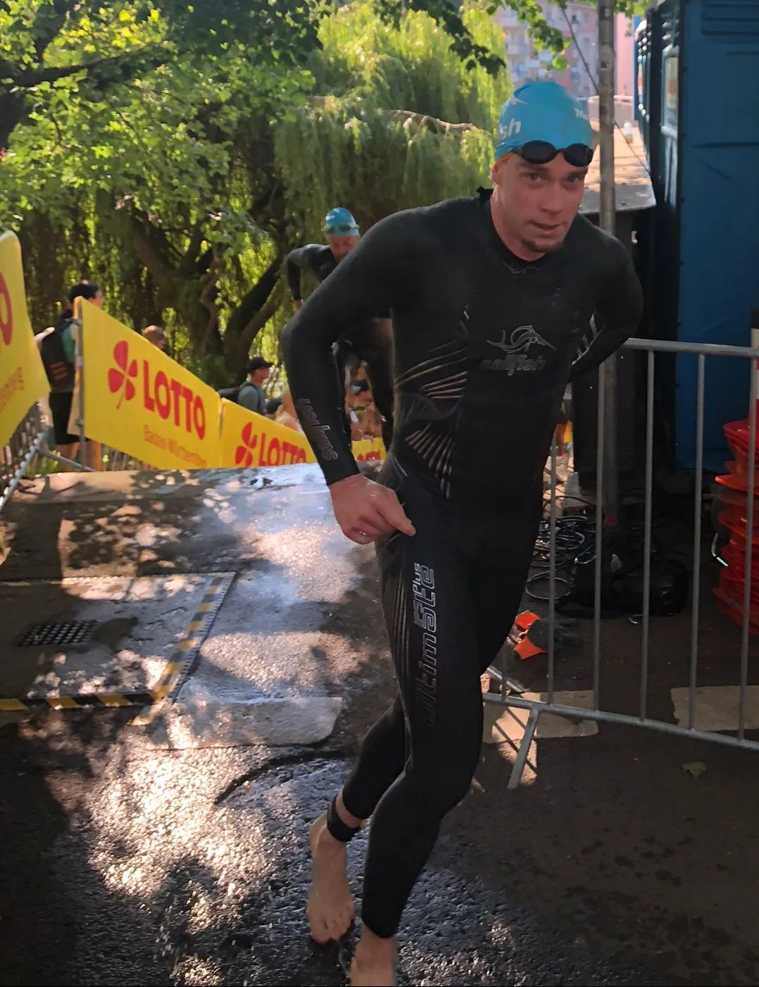 Kurz in den Neckar gesprungen um sich nass zu machen und ein paar Kraulzüge zu machen. 8:15 Uhr dann pünklich start mit dem mittlerweile fast überall angewendeten Rollingstart. Es ging erstmal gegen die Strömung. Die anscheinend immer stärker wurde umso weiter man geschwommen ist. Dafür gab es dann auf den Rückweg den Schwung der Strömung. Leider war der Rückweg etwas kürzer. Mit meiner Schwimmleistung war ich nur mäßig zufrieden, aber wie immer Triathlon hat dann noch 2 Disziplinen.