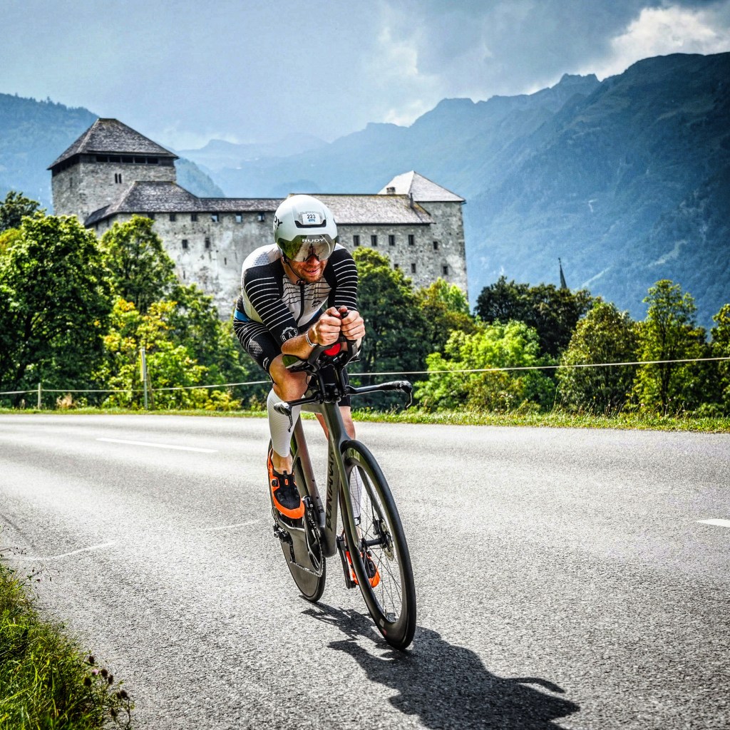 Die ersten ca. 20km sind eher Flach oder leicht bergab. Da sortierte sich das Feld noch ein wenig, aber ich sammelte auch schon einige schnellere Schwimmer ein. Dann ging es lenks weg in den ca. 13 km langen Anstieg. Unten war er etwas steiler, im mittleren Teil des Anstieges wurde es leicht Flacher. Mein Plan unten locker rein und mit dann noch ausreichend Power im nicht ganz so steilen, wo die anderen sich ausruhten, weiter meine Watt zutreten. Das ging voll auf und ich machte wieder einige Plätze gut bzw.habe einige wieder eingeholt. Dann kamen die letzten 2km. 14%!!! Da drückt es einem die Kurbel wieder hoch, oder so ähnlich, da tut fast jede Übersetzung weh. Augenzu und durch und hoffen das es nicht allzu viele Körner gekostet hat. Dann kam der Teil für Kopf und Mut. Der erste Teil der Abfahrt ist sehr technisch. Da vom Anstieg ermüdet rein zugehen ist nicht einfach. Deshalb binich nach dem Motto da runter, hier kann man nur verlieren und nicht gewinnen. Im zweiten Teilder Abfahrt geht es dann nur noch gerade aus oder langezogene Kurven. Auch hier kann man einen Unterschied machen wenn man noch tritt anstatt einfach rollen zu lassen. Dann waren es aber immer noch ca. 40km, meine Beine hatten die Power und somit konnte ich noch zwei drei Grüppchen nach vorne fahren. Mit der zehnt schnellsten Radzeit in meiner Altersklasse bin ich echt zufrieden. Ich war auch knapp 3 Minuten schneller als 2015.