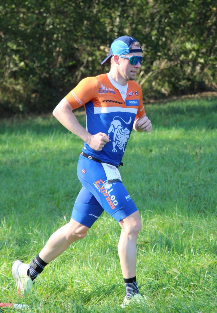 Wie schon eingang erwähnt sind wir mit ein paar Triathleten/innen nach Östringen gefahren. Auf der Kurzdistanz waren im ersten Laufpart 7km zurück zu legen, genauer gesagt 2 Runden a 3,5km. Ich kam direkt von 2 Messe Wochen und die eine Messe war in den USA und die zweite die wichtigste in der Branche. Trotzdem lief es gar nicht so schlecht. Dann der Wechsel auf Rad. Beim KraichgauMan sind auch CycleCross und Gravelräder erlaubt. Es muss eine Reifenbreite von min. 1,5″ gefahren werden, das gab es zu beachten. So konnte ich mein neues Stevens Camino hier ausführen. Da ich die Strecken kannte, konnte ich entsprechend zügig in die Trails reinfahren. Spaß ohne Ende und die Tongrube kam ja noch. Dort angekommen gab es erstmal einen 180° Turn gefolgt von einen Trop der dann unten in einer kleinen Welle mit Schlammbad endete. Das hieß vorsichtig rein aber mit Schwung durch, sonst blieb man stecken. 3 Runden galt es beim Radfahren zu meistern. Dann wieder der Wechsel in die Laufschuhe. Beim Radfahren vielleicht etwas zu viel Spaß gehabt, also etwas übertrieben + plus die „Messebeine“ machten die Abschließende Runde (Es musste noch einmal die 3,5km Runde gelaufen werden) fast zur Qual. Ich passt das Tempo an, schnell ist anders. Letztendlich sollte der Spaß im Vordergrund stehen und das Stand er, nicht nur bei mir sondern bei allen im Verein. wie oben schon geschrieben bei der langen Hawaii Nacht wurde nicht nur das Rennen verfolgt sondern auch über die Heldentaten des Tages diskutiert.